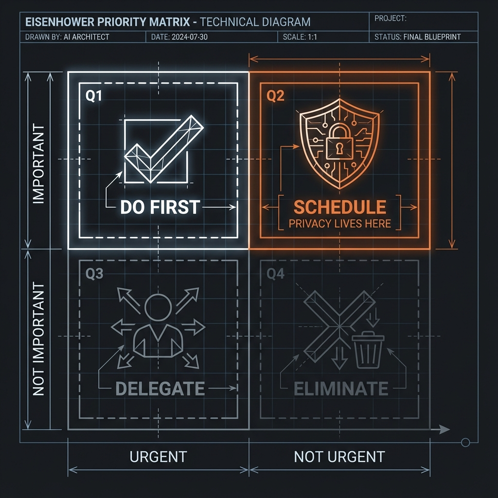 The Eisenhower Matrix (don't fall asleep on me, this will make sense) divides tasks into four quadrants based on urgency and importance. The insight? The most valuable work lives in Quadrant 2: important but not urgent.
